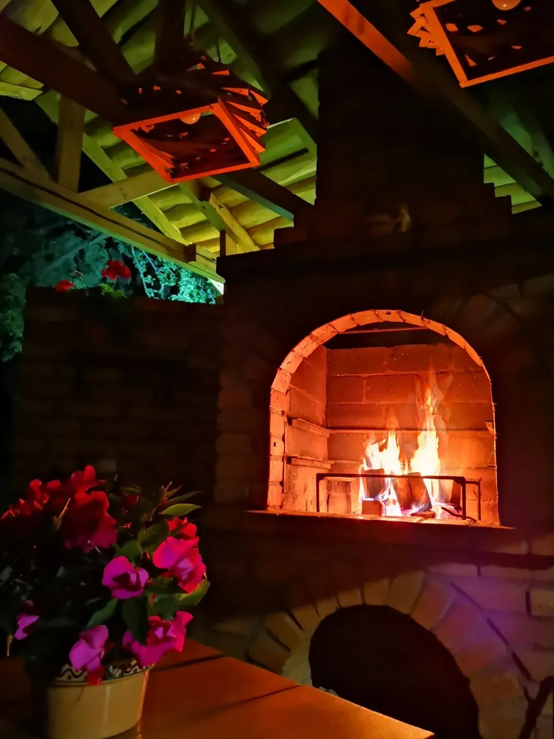 - просторная беседка с печью-мангалом-барбекю и казаном